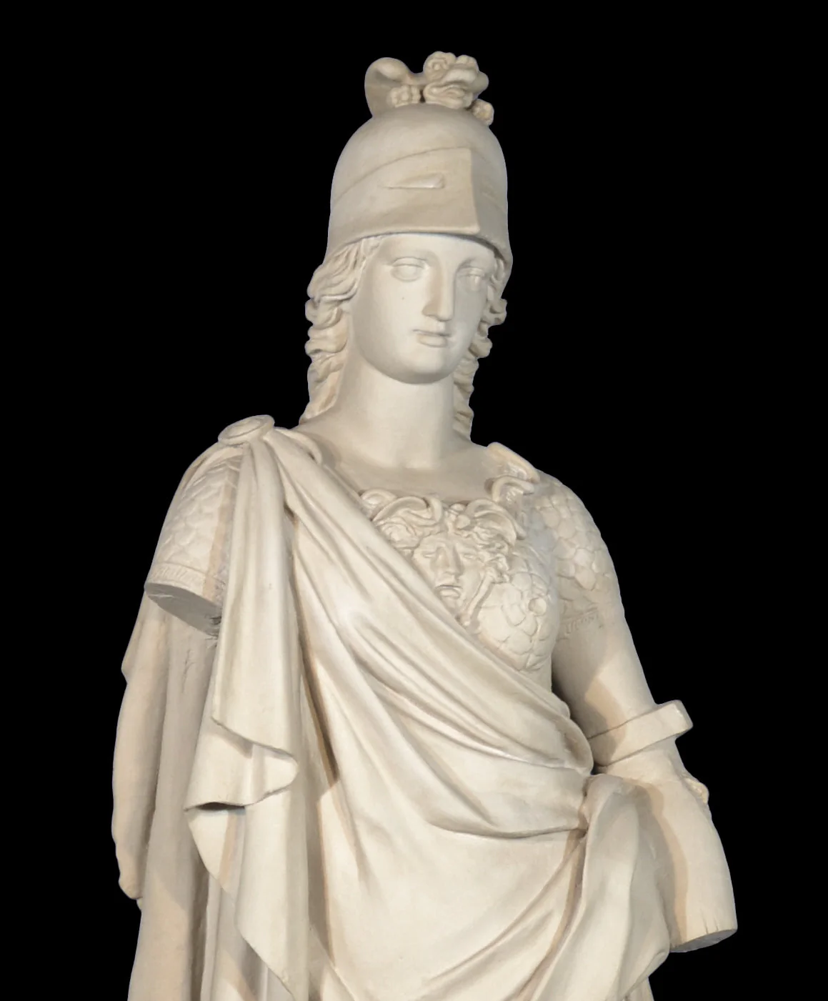 Graceful Dignity: Athena’s face is often portrayed with a calm yet determined expression, reflecting her ability to maintain peace through reason and justice, as well as her readiness to engage in strategic warfare when necessary. This statue encapsulates that balance between tranquility and strength, making it a symbol of wisdom in action.