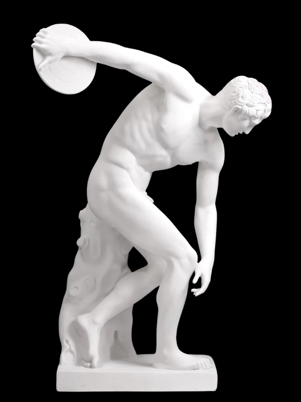 The original Discobolus by Myron was created during the height of the Classical period of ancient Greece, a time when sculptors were particularly focused on achieving an idealized version of the human form. The Greek athlete, especially in the discus thrower, was a symbol of arete, a term meaning excellence in both physical and moral virtues. Sculptors like Myron sought to depict the human body in its most perfected form, where balance, proportion, and harmony were paramount. The statue captures the exact moment when the athlete prepares to release the discus, his body coiled in a dynamic pose that emphasizes both strength and grace.