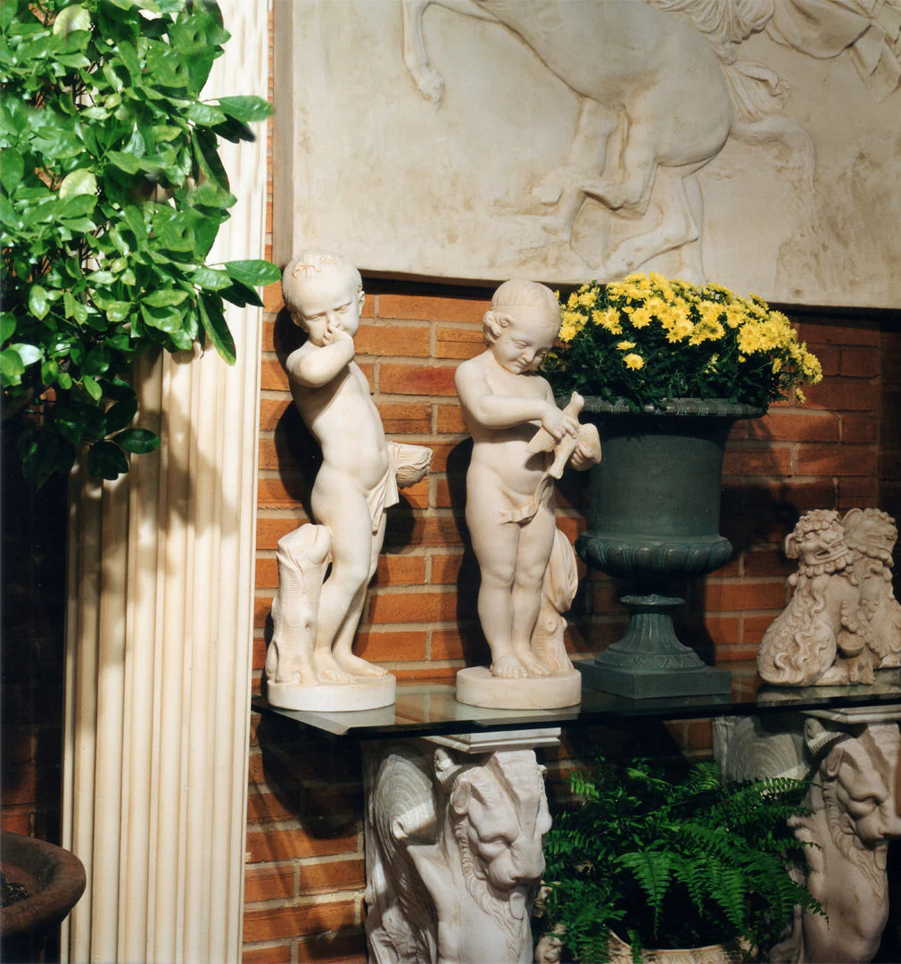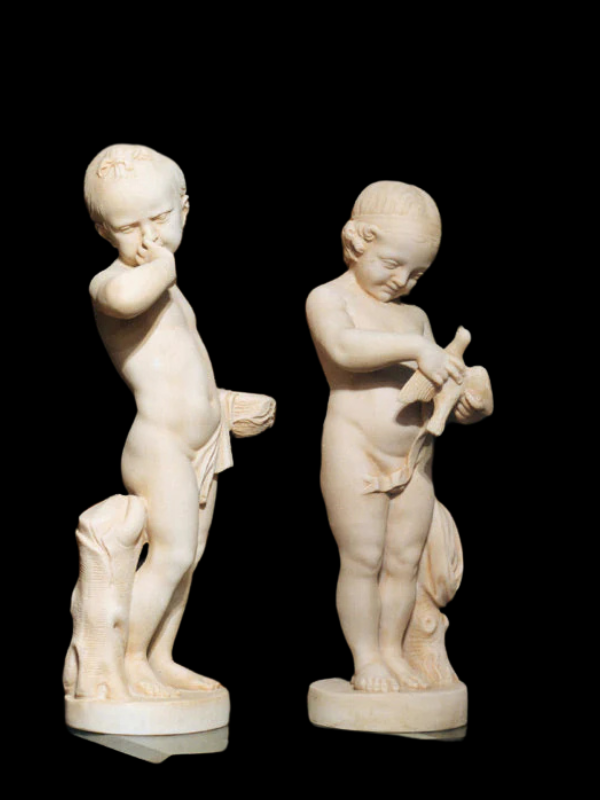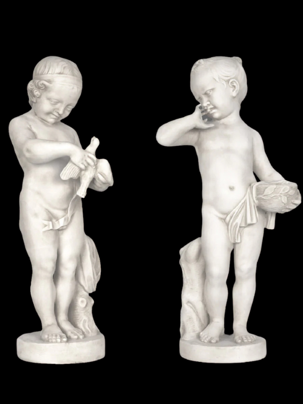 In this description, we will explore the historical and cultural significance of the neoclassical style, the mythological and artistic representations of children in classical art, and the intricate process behind the creation of this life-size statue pair. This timeless piece will be shown not only as a stunning decorative element but also as an artwork deeply rooted in tradition, craftsmanship, and neoclassical beauty.