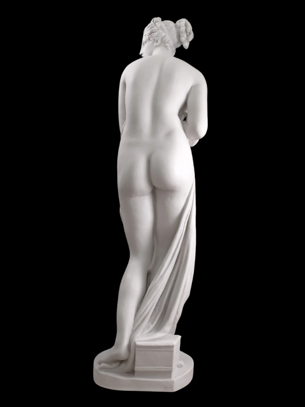 Soft Drapery: One of the most exquisite elements of Canova’s sculpture is the way he masterfully rendered the drapery that clings to Venus’s body. The light fabric seems to cascade naturally over her form, accentuating her curves without obscuring the delicate lines of her figure. This reproduction captures that same level of detail, with the flowing folds of the fabric adding a sense of movement and fluidity to the statue.