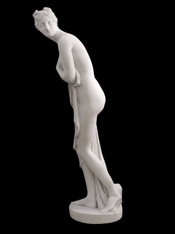 Precision in Detail: Every aspect of the original Venus Italica has been faithfully replicated in this life-size reproduction. From the soft curves of the goddess’s body to the intricate folds of her drapery, the attention to detail ensures that this statue retains the same sense of beauty and grace that made Canova’s original so iconic.